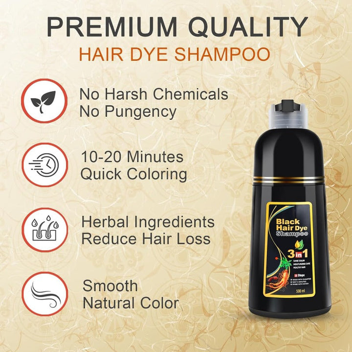 3-in-1 Instant Black Hair-Dye Shampoo – 100ml / 500ml