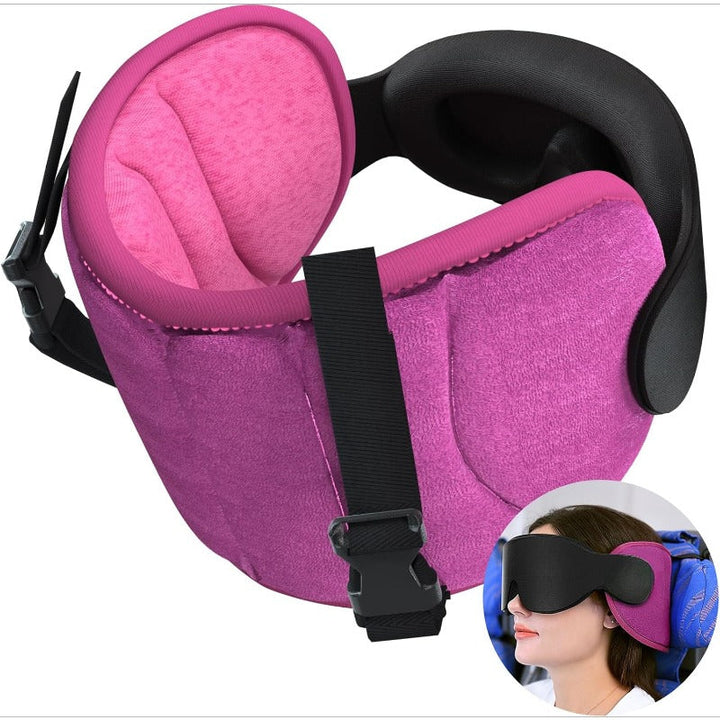 Unlike U-shaped neck pillows that push on your chin, this pillow softly “sticks” your head in place across the sides and back. The wrap distributes support into the seat’s headrest to prevent tipping forward or sideways for truly ergonomic, upright sleep.