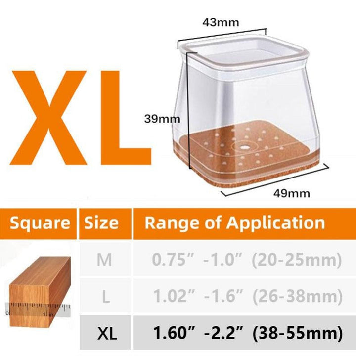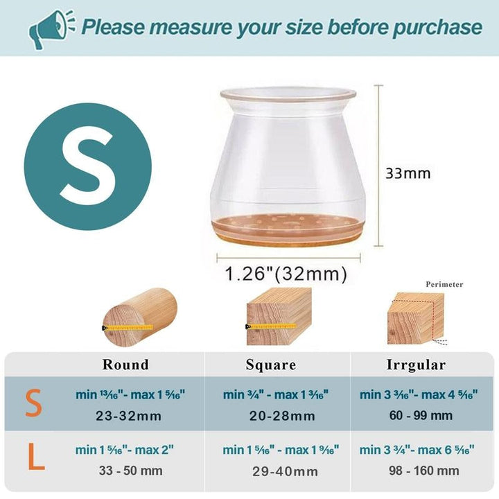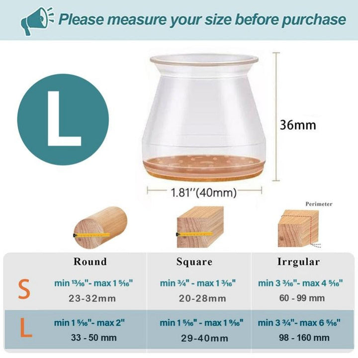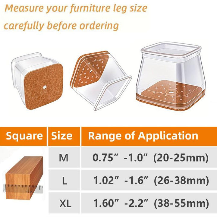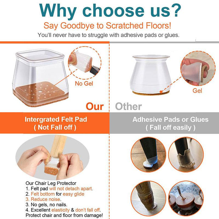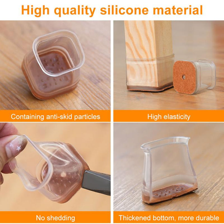 Clear Silicone Chair Leg Caps with Integrated Felt Pads