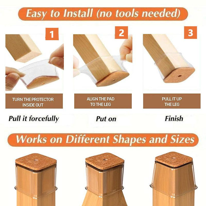 No tools or adhesives: just turn the cap inside-out, align to the leg, and pull upward for a custom fit.