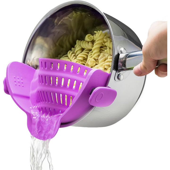 Effortlessly drain pasta, vegetables, or ground meat straight from the pot—no need for bulky colanders or balancing lids. Simply clip the flexible silicone strainer onto the pot's rim and pour with confidence.