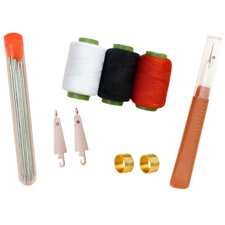 Materials | Stainless steel needles; ABS/PET tube; metal thimbles; plastic threaders |