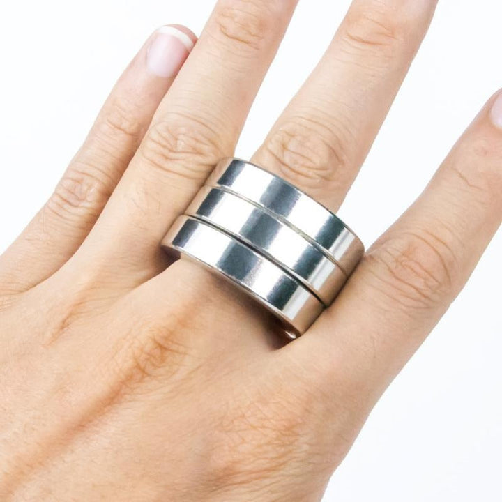 Crafted from thick, titanium-plated stainless steel, this ring resists bending, offers impressive durability, and ensures smooth, consistent movement.