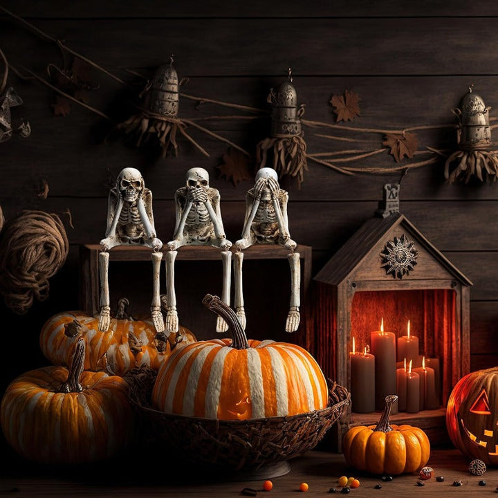 Bring a humorous twist to your Halloween decor with these three mischievous skeletons posed in the classic “See No Evil, Hear No Evil, Speak No Evil” stance. Whether you’re decorating a mantle, desk, or haunted setup, these figurines add an eerie yet whimsical vibe that’s perfect for the season.