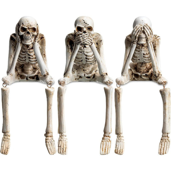 Halloween Resin Skeleton Figurines – 3PCS “See No Evil, Hear No Evil, Speak No Evil” Set
