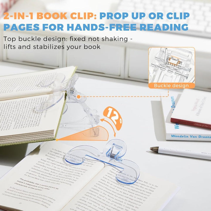 Use it as a clip to hold pages or as a mini stand to support your book. Great for hands-free reading, cooking, piano practice, or typing notes alongside your text.