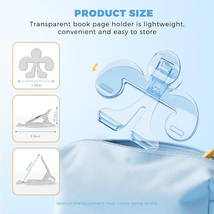 Lightweight and travel-friendly (4.72in × 3.94in × 1.77in), this page holder fits easily in a bag, desk drawer, or backpack. A smart companion for students, teachers, and avid readers on the go.
