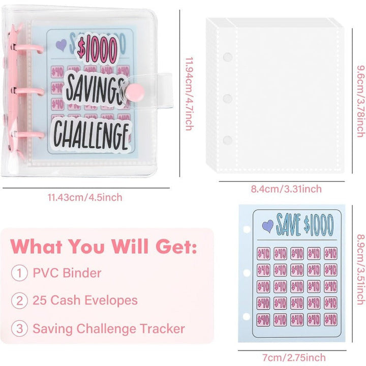 Mini Budget Binder with 25 Waterproof Envelopes – $1000 Reusable Savings Challenge
