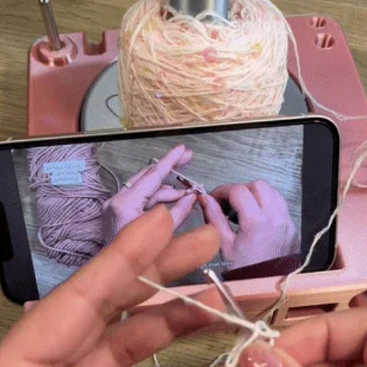Knit or crochet without interruptions—this all-in-one yarn spinner keeps your yarn flowing smoothly, your tools organized, and your phone perfectly positioned for tutorials or entertainment.