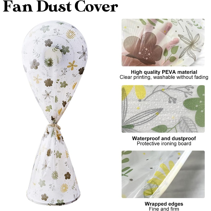 Made from high-quality PEVA, this cover is waterproof, dustproof, and durable. It helps keep your fan or ironing board clean from moisture, dirt, and dust while maintaining its vivid floral print even after washing.