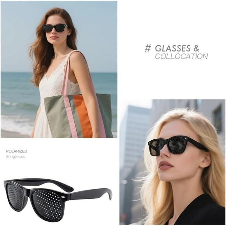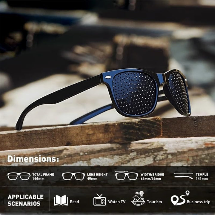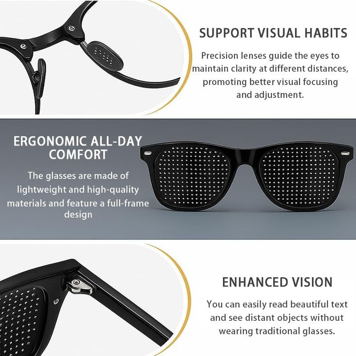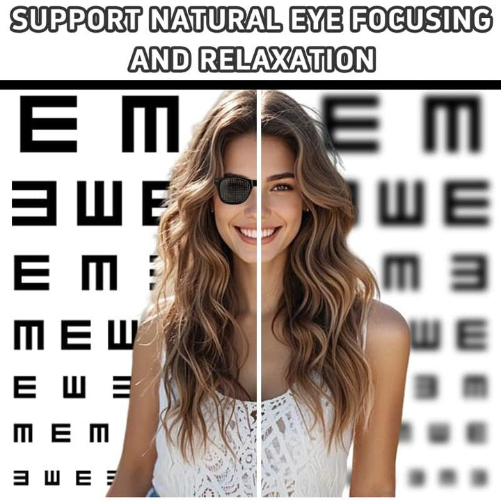 Unlike prescription eyewear, these non-lens pinhole glasses naturally engage your eyes to refocus and relax. The evenly spaced micro-holes sharpen incoming light and reduce visual noise—no optics, just physics.
