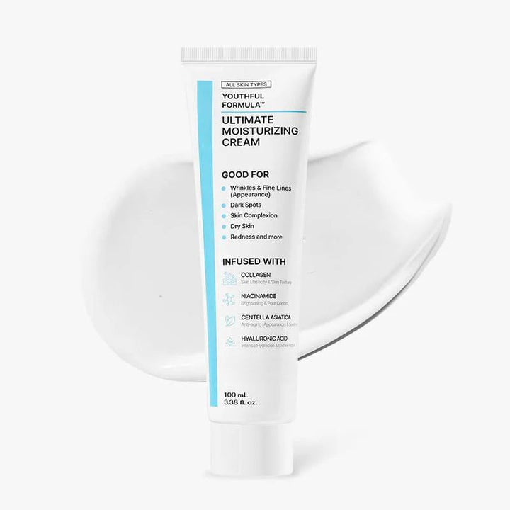Powered by K-Beauty science, Youthful Formula Ultimate Moisturizing Cream infuses skin-loving collagen, niacinamide, Centella, hyaluronic acid and bifida ferment into one feather-light hydrator.