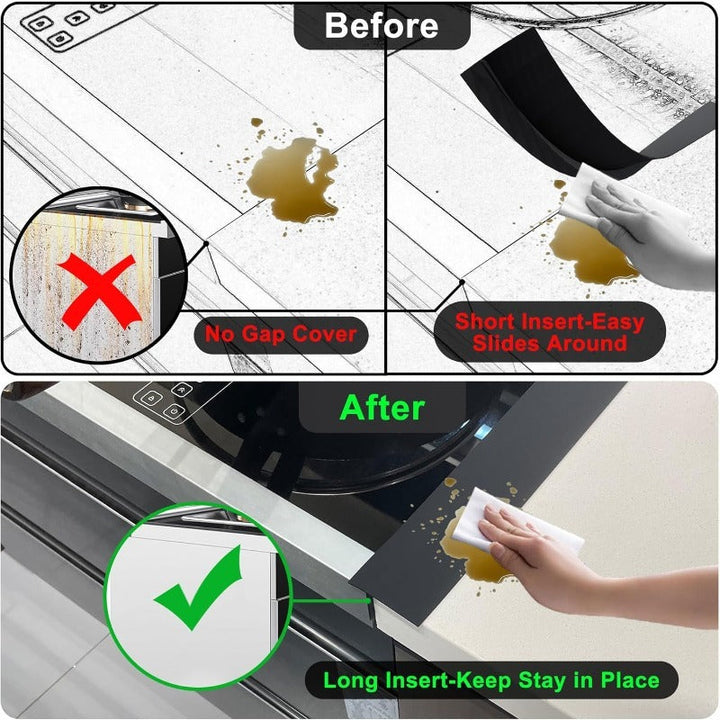 Say goodbye to loose, shifting gap fillers! Our upgraded version features a 0.8" deep insert that fits tightly between your stove and counter, keeping it stable even during regular cleaning.