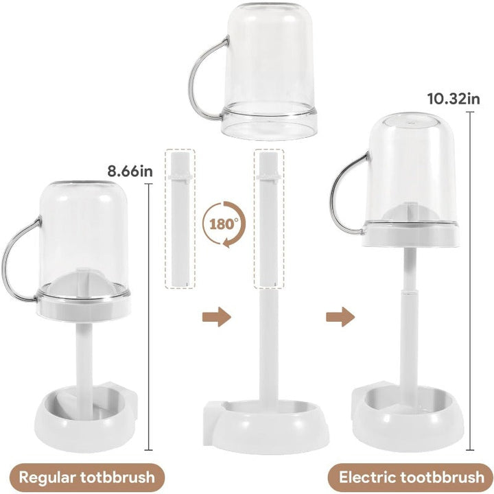 Includes a matching rinse cup that flips upside down to cover toothbrush heads, protecting them from dust and splashes. A simple and hygienic solution for everyday oral care.