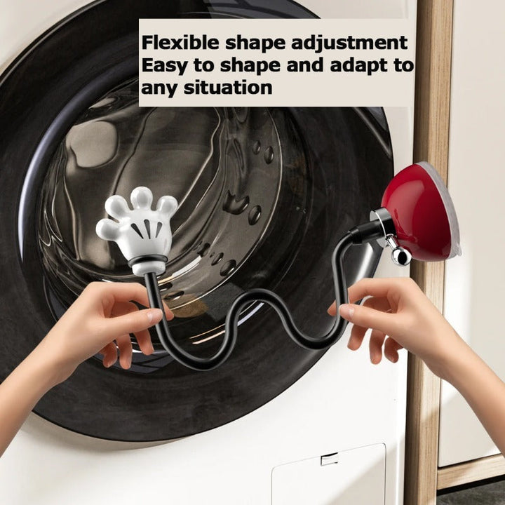 Adjust the soft metal arm to any shape or angle—perfectly adapted to any machine model or layout. The large suction cup anchors firmly to the washer, offering steady, non-slip support.